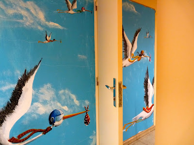 | Lá o fundo, está a entra da para zona de CI Neonatais, onde está colocada a ilustração das cegonhas, que já mostrei anteriormente. |